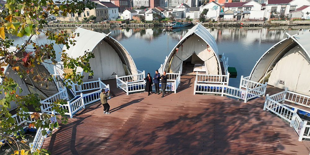 Foto tirada em 30 de agosto de 2025 mostra vista externa do local principal da Cúpula da Organização de Cooperação de Shanghai (OCS) 2025 em Tianjin, norte da China. (Xinhua/Sun Fanyue)