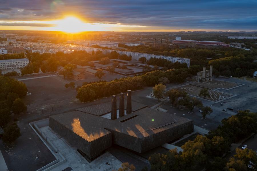 Foto tirada por drone em 16 de setembro de 2025 mostra uma vista do Salão de Exposições de Evidências de Crimes Cometidos pela Unidade 731 do Exército Imperial Japonês em Harbin, capital da Província de Heilongjiang, no nordeste da China. (Xinhua/Zhang Tao)