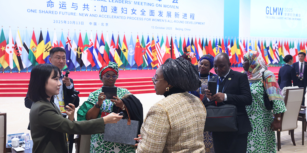 Participantes concedem entrevista na Reunião de Líderes Globais sobre Mulheres em Beijing