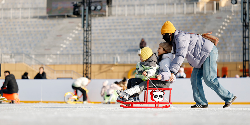 Moradores aproveitam atividades de inverno em Yinchuan, noroeste da China