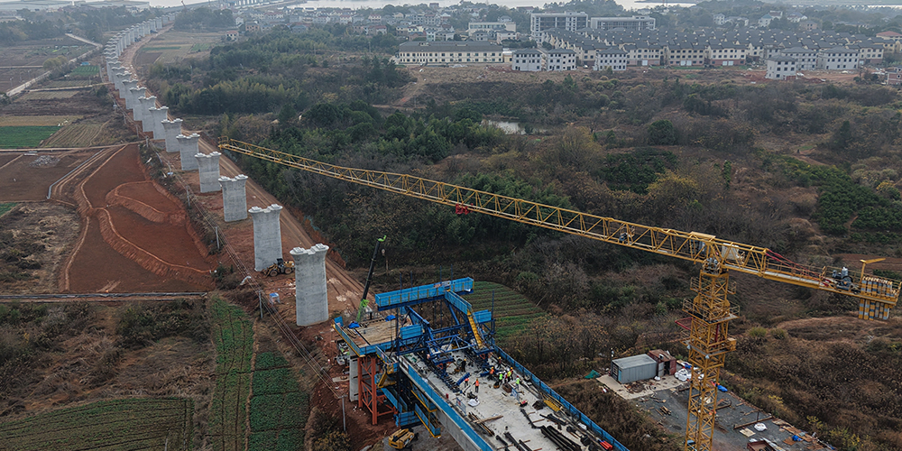 Avança a construção de ponte da ferrovia de alta velocidade Chongqing-Wanzhou