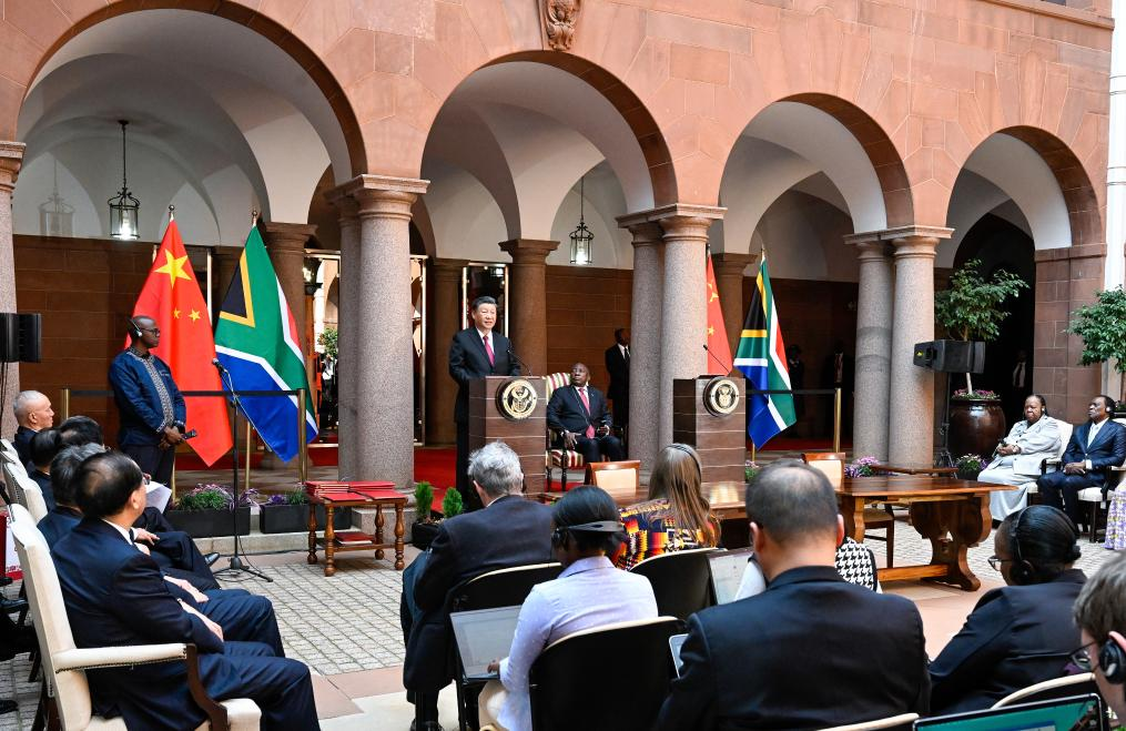 Este ano marca o 25º aniversário dos laços diplomáticos China-África do Sul, disse Xi, observando que, durante os últimos 25 anos, os laços China-África do Sul alcançaram um desenvolvimento notável, com a confiança estratégica mútua atingindo um novo patamar, a cooperação em vários campos avançando de maneira abrangente e a coordenação multilateral se tornando ainda mais estreita.