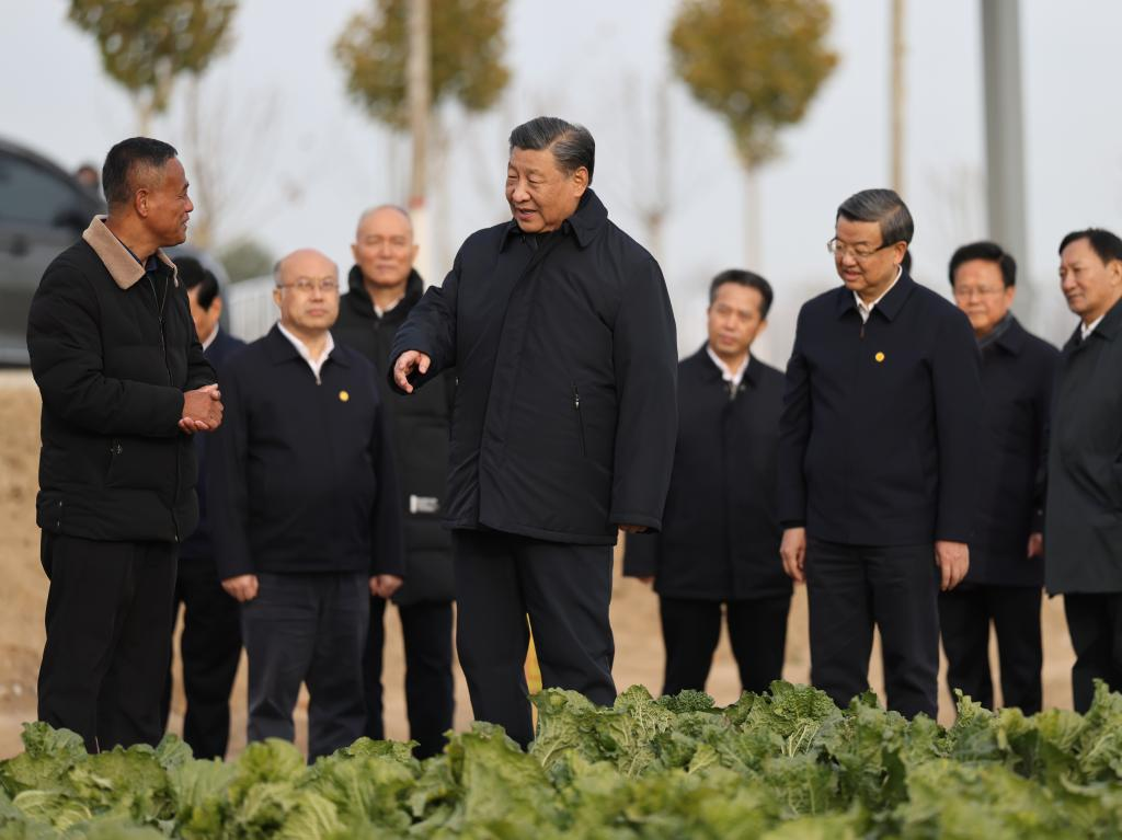 Em seguida, Xi caminhou até uma fazenda próxima para inspecionar o crescimento das plantações.