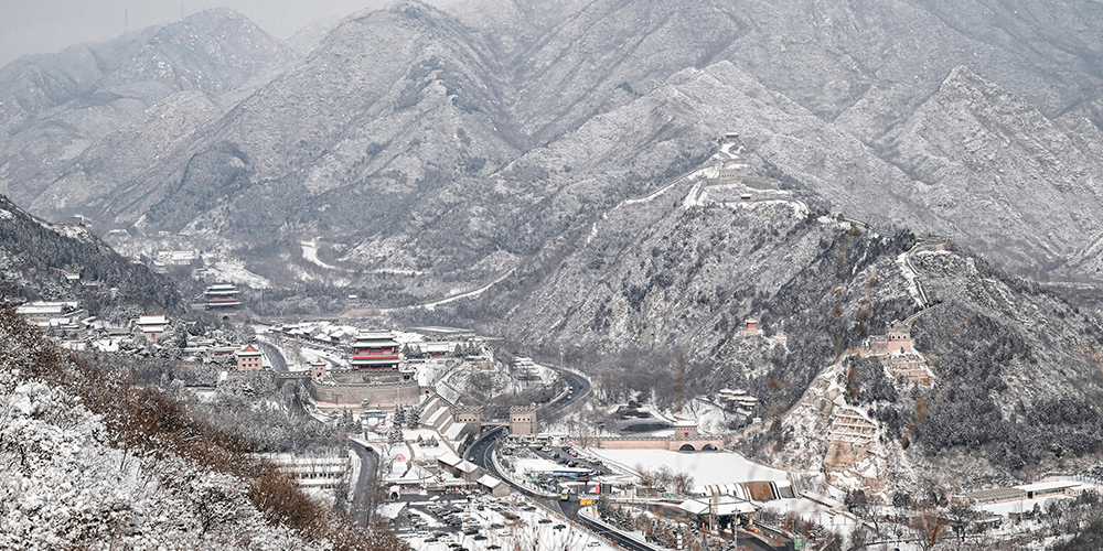 Neve e baixas temperaturas pintam de branco a paisagem da Grande Muralha em Beijing