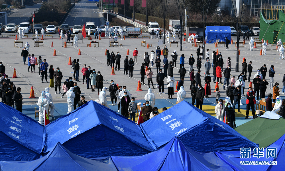 11月10日,市民在西寧市城西區北城7區廣場臨時核酸檢測點排隊做檢測。新華網 卡婭梅朵 攝
