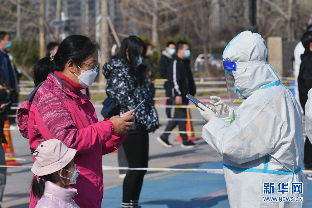 11月10日,西寧市城西區北城7區廣場臨時核酸檢測點,工作人員正在驗證市民的二維碼信息。新華網 卡婭梅朵 攝