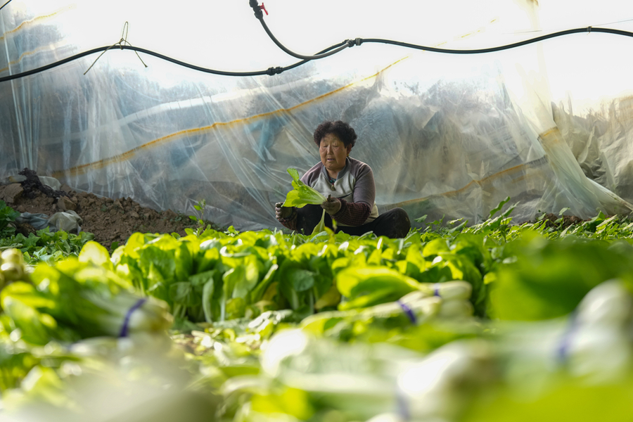 11月21日,工作人員在青海省西寧市湟中區一處蔬菜大棚內工作。新華社記者 杜笑微 攝