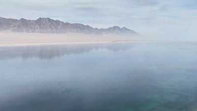 冬日時節,位於青海省海西蒙古族藏族自治州茫崖市的蘇幹湖與奎屯諾爾湖如藍寶石被鑲嵌在戈壁深處,澄澈的湖水凝結成冰面,陽光照射時,冰面折射出七彩的光斑,如夢似幻。