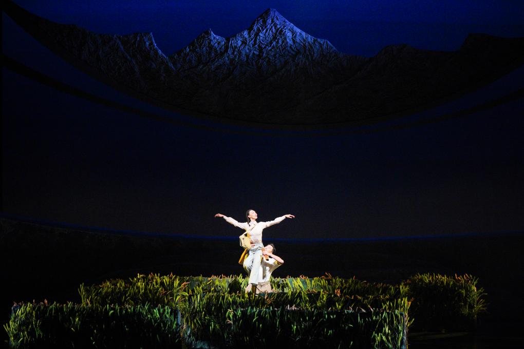 12月4日,演員在舞劇《雪山大地》中表演。新華社記者 齊芷玥 攝