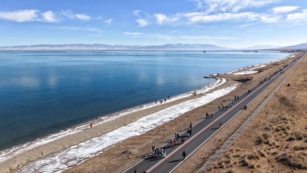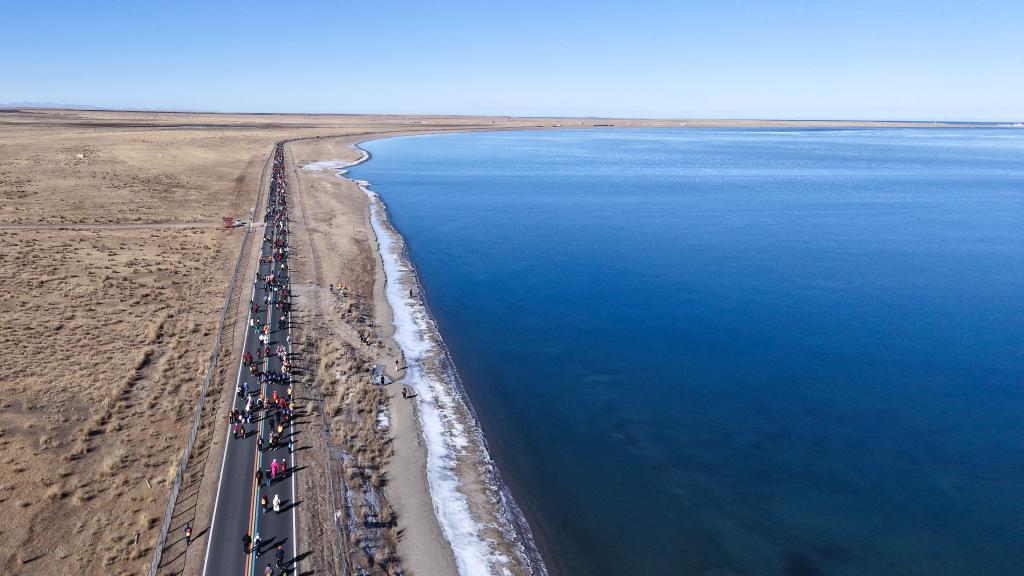 當日,青海湖迎新年生態環保徒步活動在青海省海南藏族自治州青海湖二郎劍景區舉行。