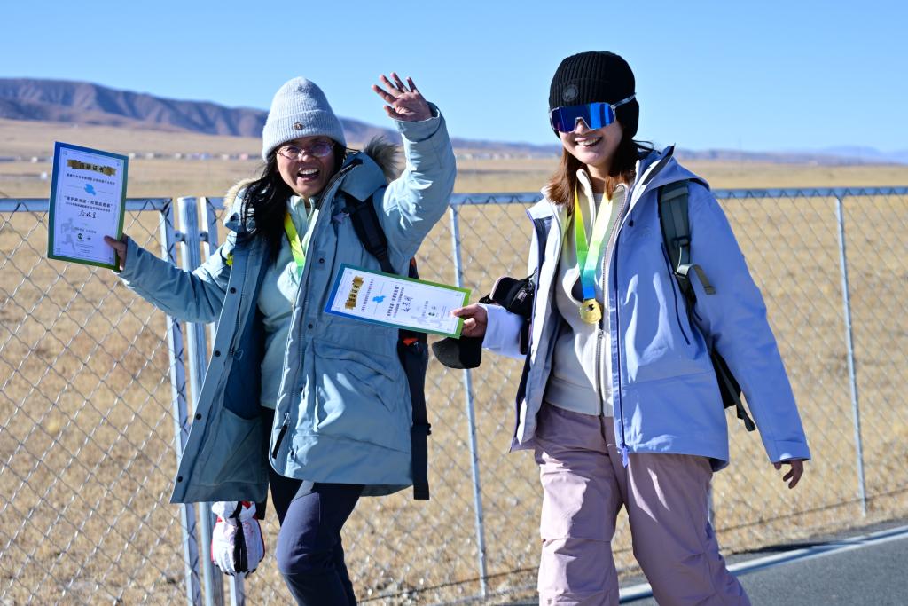 12月27日,兩名徒步愛好者在抵達終點後。新華社記者 齊芷玥 攝