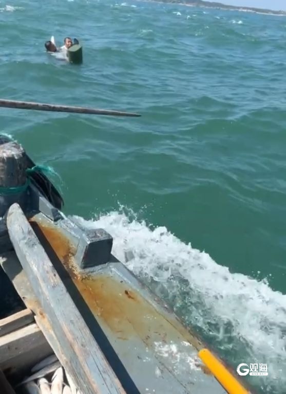 “當時的風不是太大,但因為是在深水區,浪涌特別大,船晃得厲害。”趙曉文告訴記者,海上浪涌也會影響視線,一時間他們並沒有發現落水者。等船到達傾覆的皮筏艇附近,趙曉文才發現有3名落水者。其中一人抱着油桶,其他兩人抱着保溫箱及救生圈在海上漂浮着。在經過簡單的溝通後,他們得知其中一人水性較差,體力已經不支,但幸運的是,3人都處於清醒狀態。