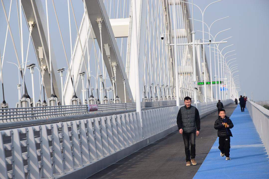 11月23日上午,由濟南城市建設集團投資建設的濟南黃河大橋主線、濟南黃河齊魯大橋同時通車運營。在齊魯大橋,通車後,附近居民通過大橋兩側的“橋頭堡”登上大橋橋面,欣賞壯麗的黃河景觀。