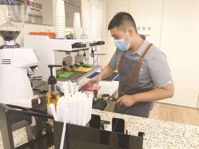 自閉症員工為顧客遞上“愛心拉花”咖啡