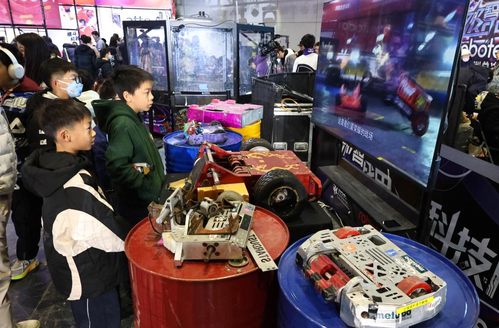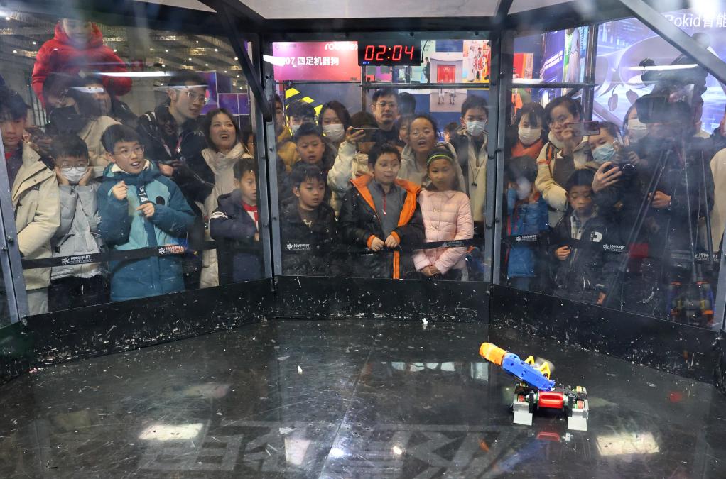 1月2日,參觀者在觀看機器人格鬥比賽。