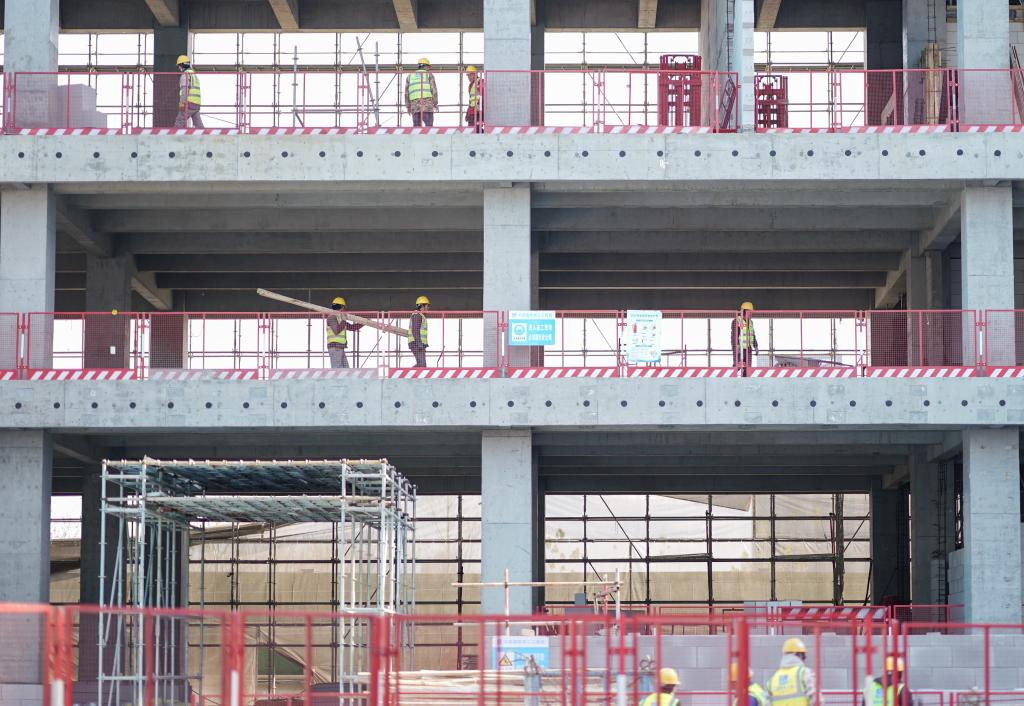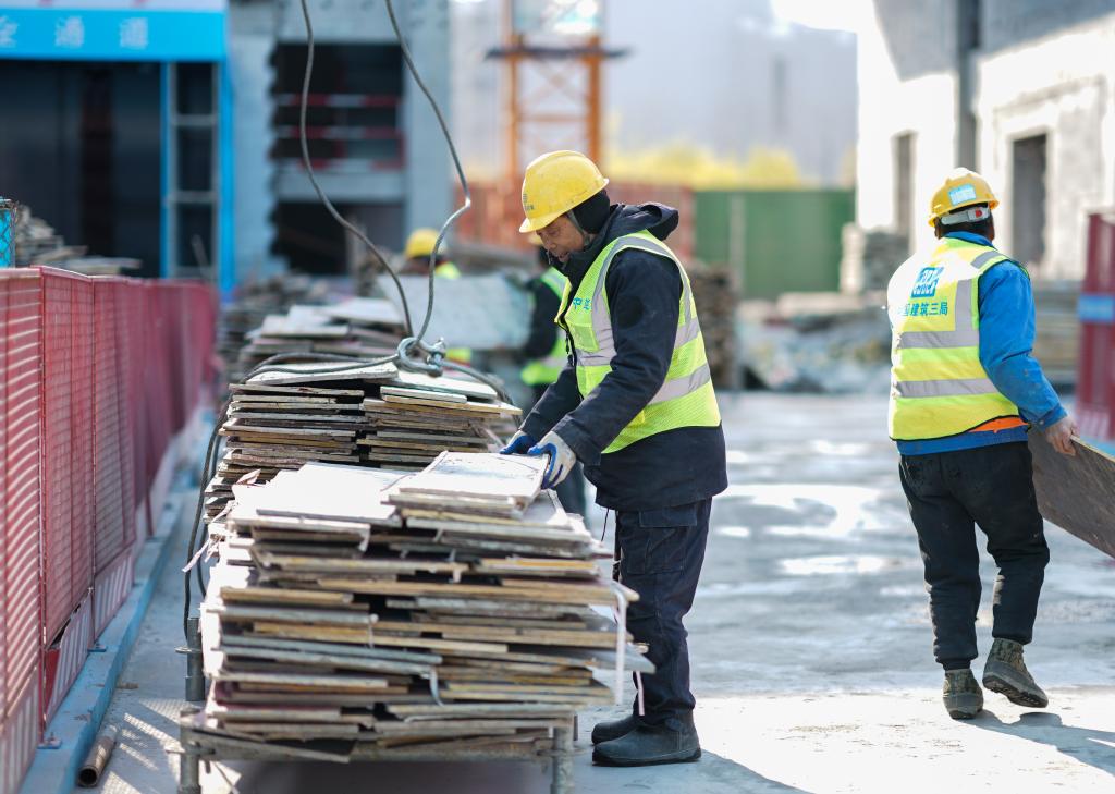 1月2日,工人在位於上海的中建三局一公司燦瑞科技全球芯片研發中心項目工地施工。