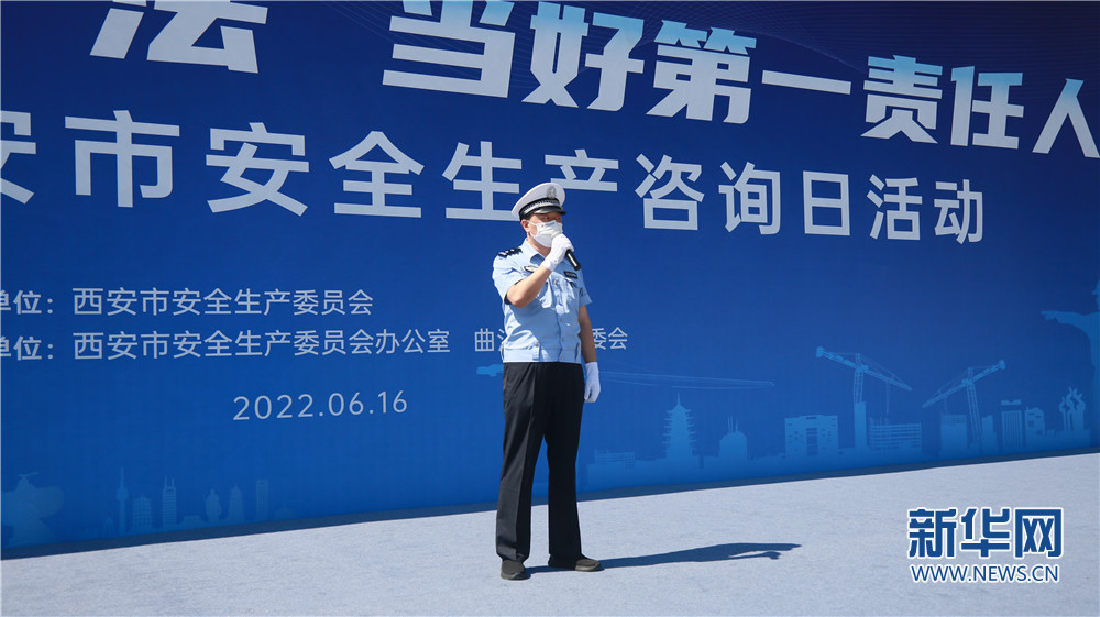 活動現場,西安市交警曲江大隊民警為現場觀眾講解交通安全知識。新華網王智超攝