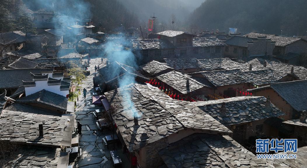 晨曦中的終南山寨,炊煙嫋嫋(3月4日攝)。