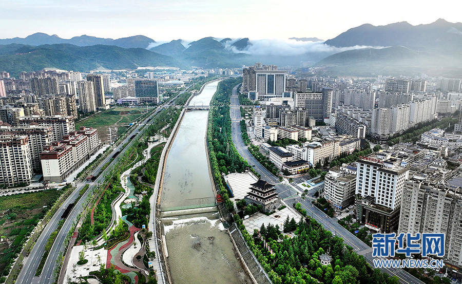 6月1日拍攝的商洛市區丹江兩岸景色。