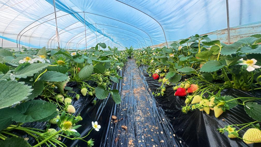 寒冬时节,陕西省眉县槐芽镇3000多亩草莓陆续成熟上市,种植户们抢抓市场先机采摘销售,鲜红的草莓不仅丰富了市民冬日果盘,更映红了种植户的“莓”好生活。