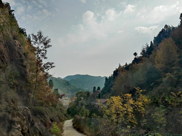 前往辋川,颇有寻觅桃花源之感。辋峪之口极狭,两侧高耸的秦岭山石上,秋韵未尽,落叶缤纷。前行约三里后,峪内山体渐成弯弓之势,围抱出大片“豁然开朗”的平旷之地,中有清流穿境,良田夹岸,屋舍俨然,这便是唐代诗人王维笔下“杏树坛边渔父,桃花源里人家”的辋川了,即如今的陕西省西安市蓝田县辋川镇。