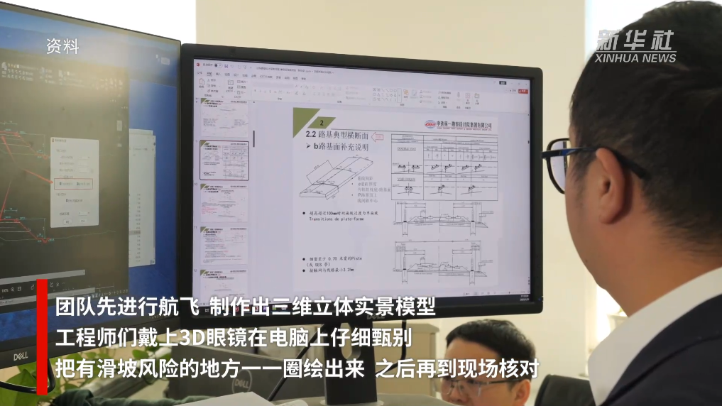 西延高铁设计团队在国内首次采用了铁一院自主研发的“大场景”三维立体遥感及数字正射影像图解译技术,为地质勘察装上了“高科技慧眼”。团队先进行航飞,制作出三维立体实景模型。工程师们戴上3D眼镜在电脑上仔细甄别,把有滑坡风险的地方一一圈绘出来,之后再到现场核对。