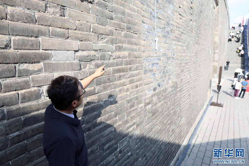 游客在西安城墙上参观以城墙保护为主题的图片展(2025年9月10日摄)。