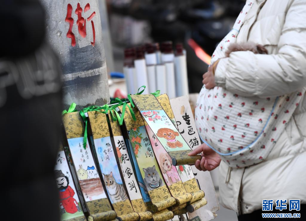 1月9日,游客在西安书院门历史文化街区挑选宠物类画像。