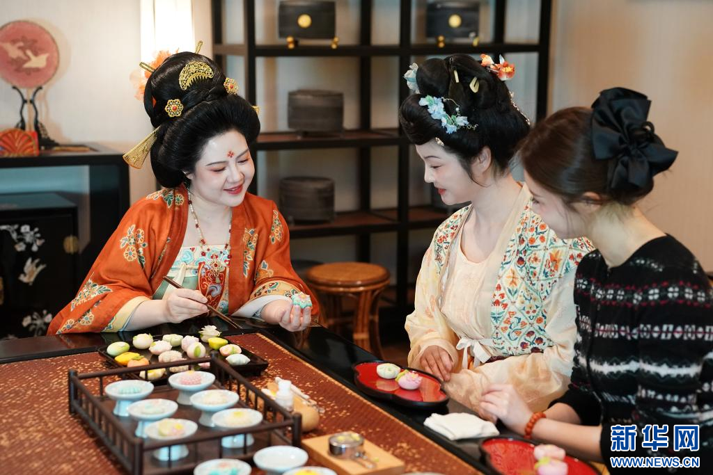 李欢认为,传统文化是取之不尽的创意源泉,而依托传统文化创新打造的消费形式和场景,更能让人们具象化地感受中华历史文化的魅力。因此,李欢和她的团队近年来不断拓宽品牌的经营方式,致力于搭建场景,让唐果子、唐茶文化走进国内外文化交流活动现场;依托各类艺术和商业场所,推出唐果子制作体验项目,吸引游客和研学团队参与。她们还整合唐茶等唐代生活的相关文化资源,向客户提供国风活动策划与演绎、教学培训、下午茶点、旅游伴手礼等服务和产品,让千年前的风雅韵味,化作更多人可感、可触、可尝的文化信物。