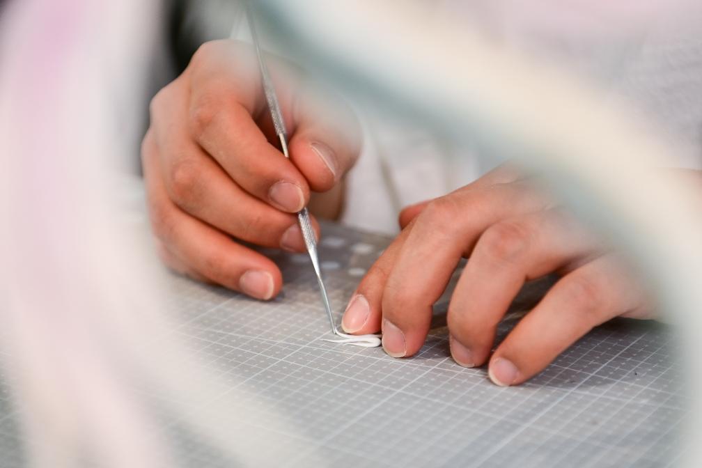 糖艺师张勃在制作糖艺装饰零部件(1月13日摄)。