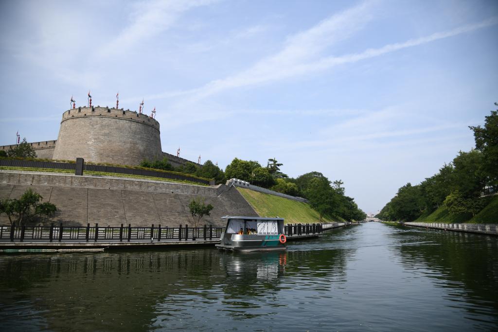新華社記者張博文 攝這款名為“汐”的新能源智能遊船無需人員進行實時操控即可自動按照設置好的點位行進、轉彎、掉頭、避讓達到了L4級自動駕駛為欣賞風光的游客帶來了更加舒適安全的乘坐體驗智能清潔船在西安護城河作業。