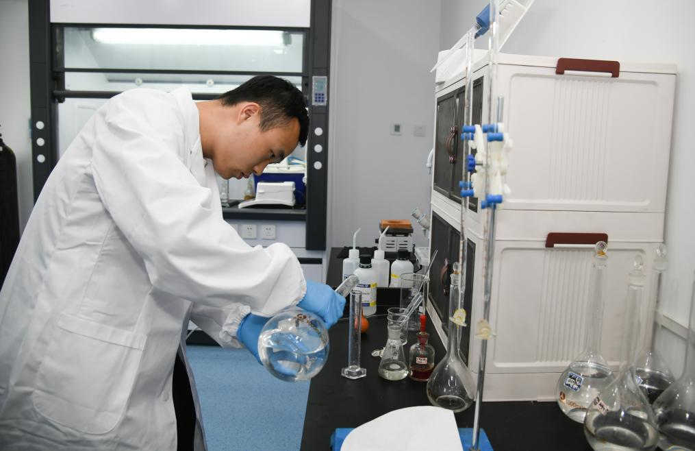 新華社記者張博文 攝這輛車背後的動力電源由固態氫能源電池供能不僅可以通過換電池直接增加續航里程而且以水為主要排放物顯得更加低碳 技術人員在西安一九零八新能源科技有限公司進行實驗。