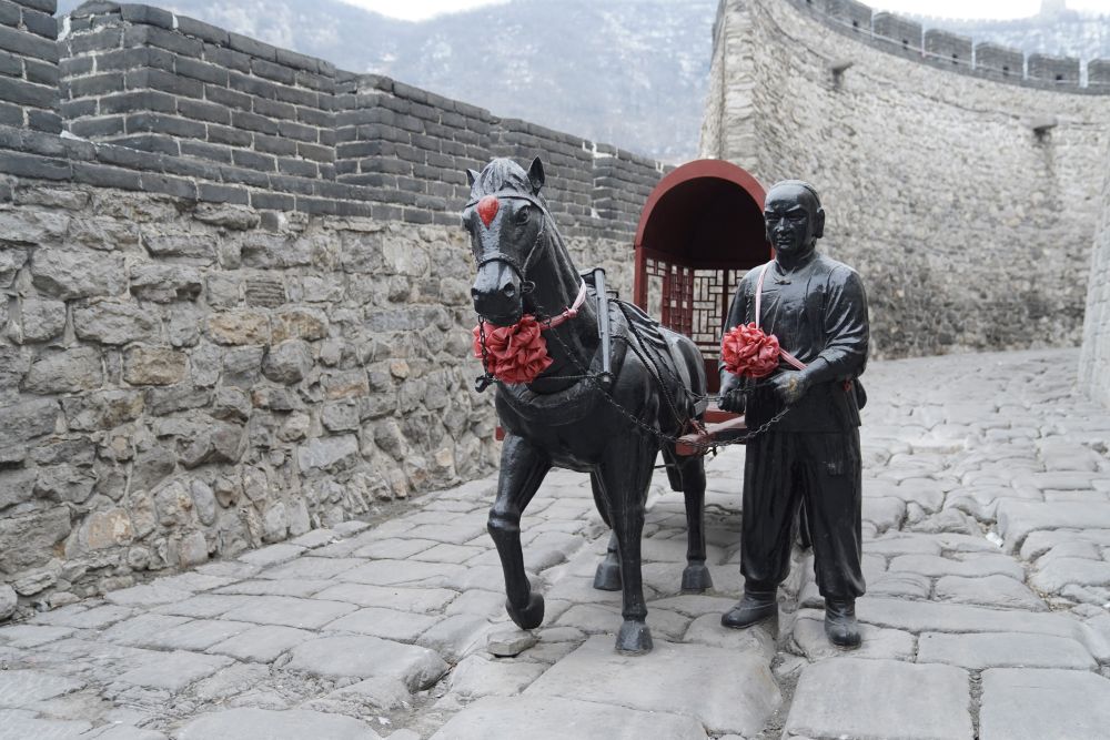 固關長城的甕城內,大約30厘米深的車轍印從城門洞下穿過,深深地鑲嵌在石板路裏。游客們徜徉於井陘古道,不禁紛紛感嘆時光流逝。