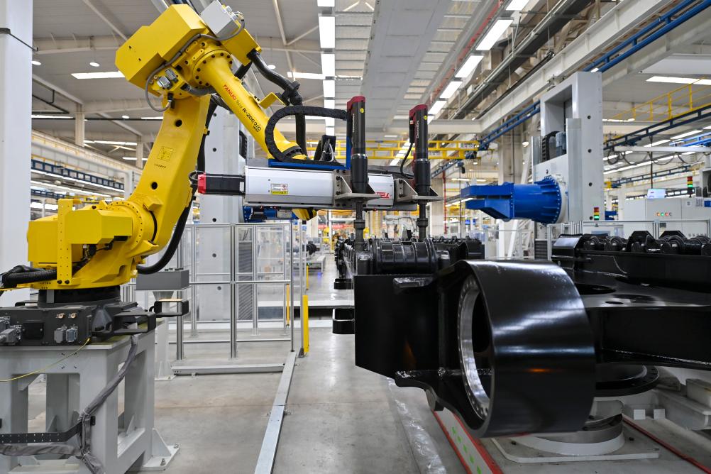 近年來,山西省把製造業振興作為産業轉型的主攻方向,確定了高端裝備製造、新能源汽車等重點産業鏈,加快構建現代化産業體系。作為山西省高端裝備製造産業鏈“鏈主”企業,太原重型機械集團有限公司(簡稱“太重集團”)通過技術創新、智能化升級等舉措,積極推動裝備製造業從“製造”向“智造”轉變。位於山西轉型綜合改革示範區的太重集團智能高端液壓挖掘機産業園區,自2023年9月投産以來,已具備年産5萬台全系列多動力液壓挖掘機的能力。目前,該園區生産的液壓挖掘機産品已銷往數十個共建“一帶一路”國家。(新華社記者楊晨光)