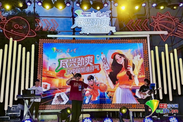 嘉年華活動設舞&區、AI互動專區、T恤瓶身定制區等多個互動區域。在AI互動專區,籃球愛好者排隊進行“投籃大作戰”,不少市民通過大屏體感,開展田徑比拼,感受“奔跑”的樂趣。在T恤瓶身定制區,許多年輕人用激光刻字機在健力寶瓶身刻出“奮鬥青春”的字樣……舞&上的樂隊演奏不斷將時尚、年輕的氣氛推向更高潮。
