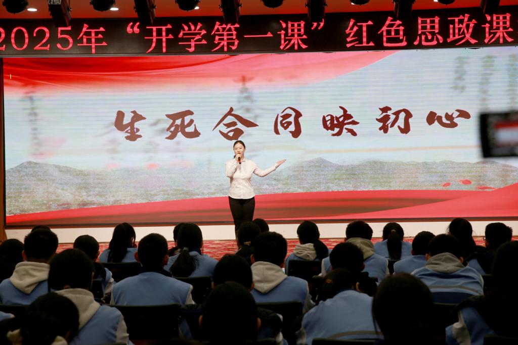 在八路軍太行紀念館,甄睿為武鄉縣第二中學校的師生們開展“開學第一課”活動(2月21日攝)。
