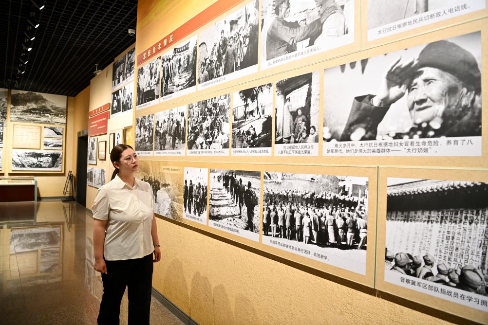 甄睿在八路軍太行紀念館為游客講解(8月7日攝)。