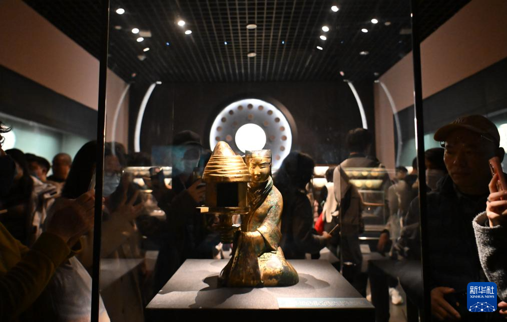 2025年1月1日,在天津博物館,觀眾參觀展覽展出的長信宮燈。新華社記者 孫凡越 攝pagebreak