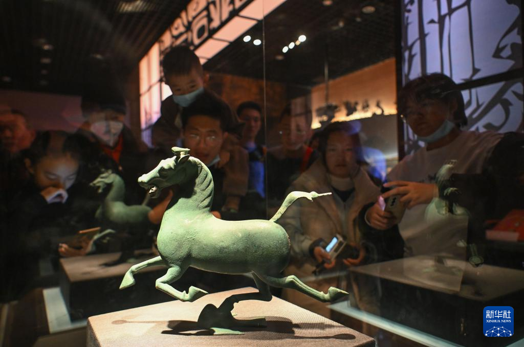 2025年1月1日,在天津博物館,觀眾參觀展覽展出的馬踏飛燕。新華社記者 孫凡越 攝pagebreak