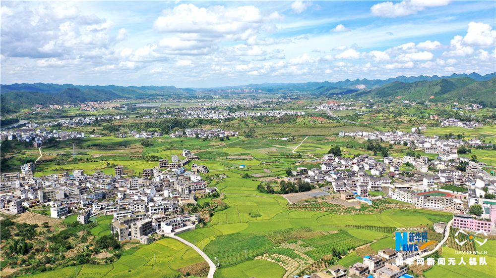 圖為8月28日在惠水縣好花紅鎮航拍的美麗鄉村一景。新華網 周遠鋼 攝