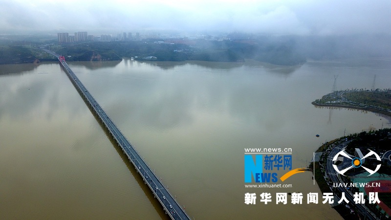 圖為丹江口庫區上游十堰市鄖陽區段,水位回升後的城區一角。新華網發 曹忠宏攝