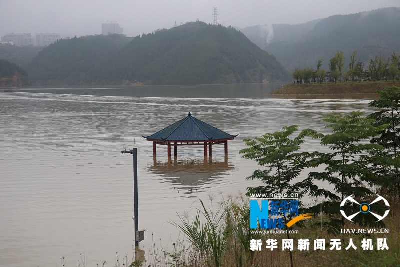 圖為丹江口庫區上游十堰市鄖陽區段,一亭子被淹。新華網發 曹忠宏攝