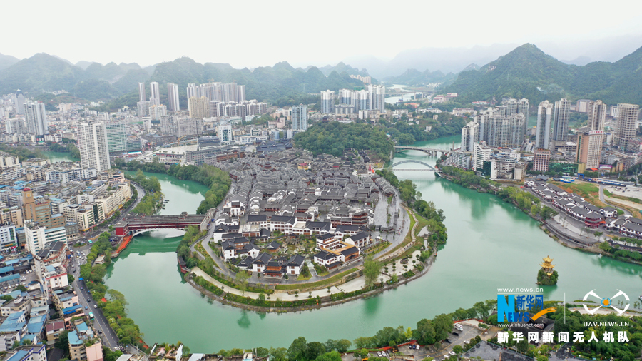 10月16日航拍的銅仁市中南門歷史文化旅游區一景。新華網 周遠鋼 攝