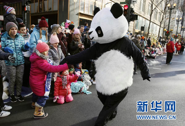 來自芝加哥東方藝術團的演員參加感恩節大游行。當地時間11月23日,第84屆芝加哥感恩節大游行在芝加哥市中心的州街(State Street)如期舉行,有40余萬市民在現場觀看了這一活動。今年感恩節大游行共有100多個游行方陣總計5000多名錶演者參加,其中包括以芝加哥東方藝術團、印城華夏文化中心舞龍和舞蹈隊為代表的華人團體,參加大游行的華人藝術團體向民眾展示帶有中華元素的表演,迎來沿途觀眾的不斷喝彩。新華網記者汪平 攝