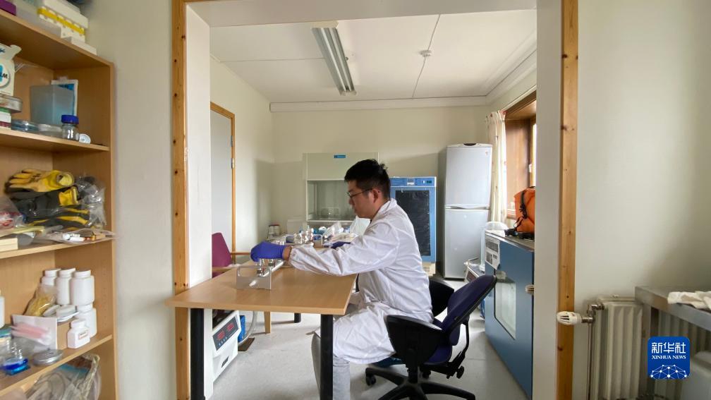 7月25日,一名中國科考隊員在挪威斯瓦爾巴群島新奧勒松的中國北極黃河站工作。新華社發(中國北極科考隊供圖)