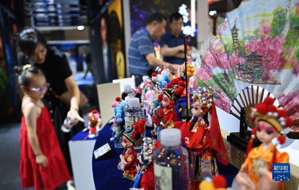 8月17日,參觀者在交流合作館陜西展區參觀。新華社記者 鄒競一 攝