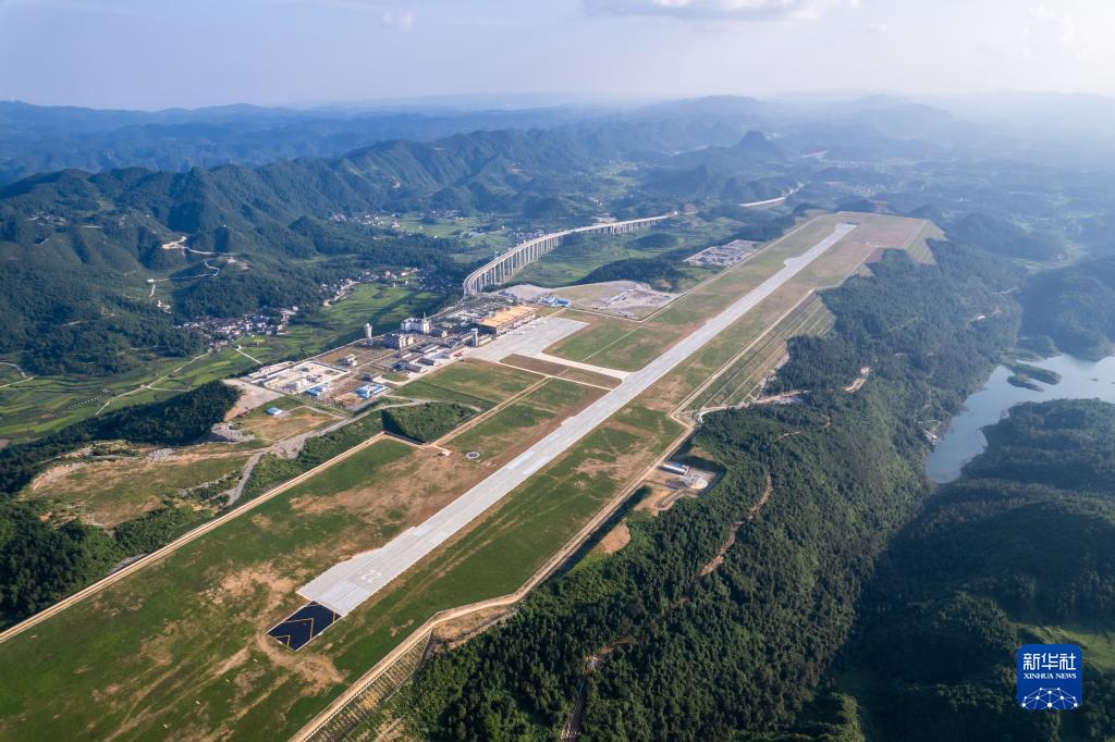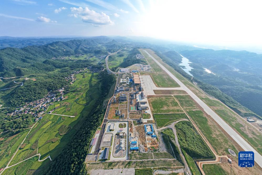 這是8月17日在湖南省湘西土家族苗族自治州花垣縣花垣鎮老天坪村拍攝的湘西邊城機場(無人機照片)。新華社記者 陳思汗 攝
