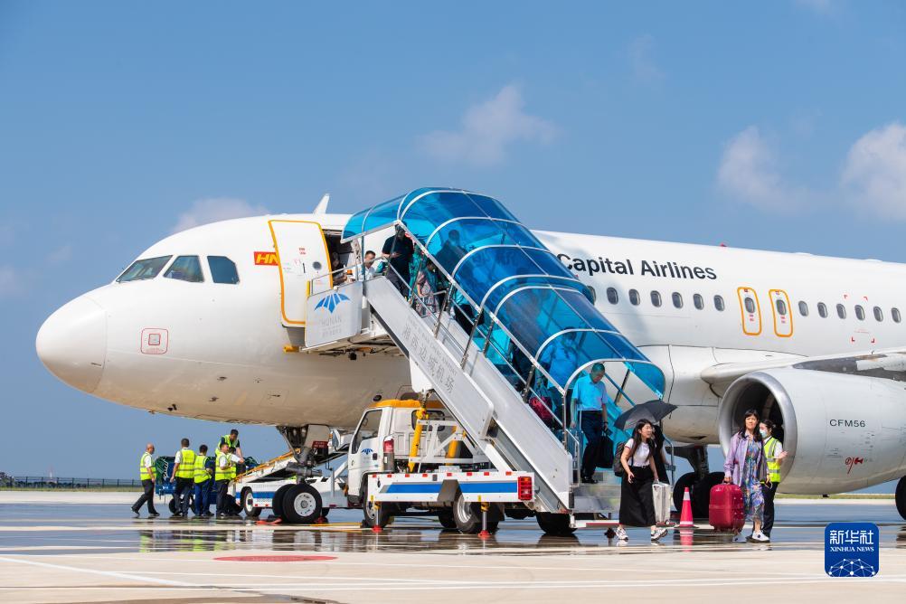 8月18日,旅客走下飛機抵達湖南湘西邊城機場。新華社記者 陳思汗 攝