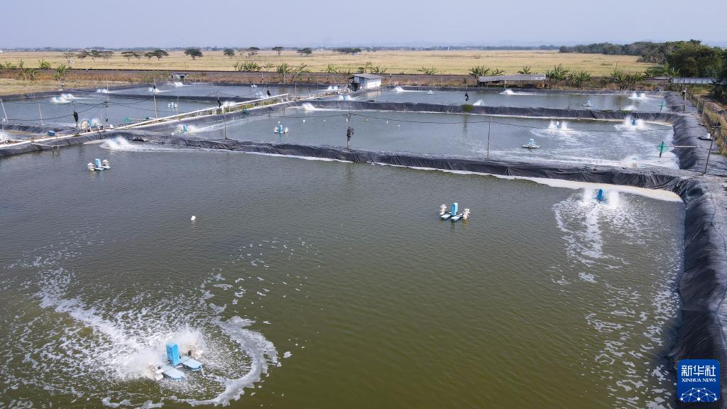 8月28日在印度尼西亞中爪哇省三寶壟市佩馬朗區拍攝的一處南美白對蝦養殖場(無人機照片)。新華社記者 徐欽 攝