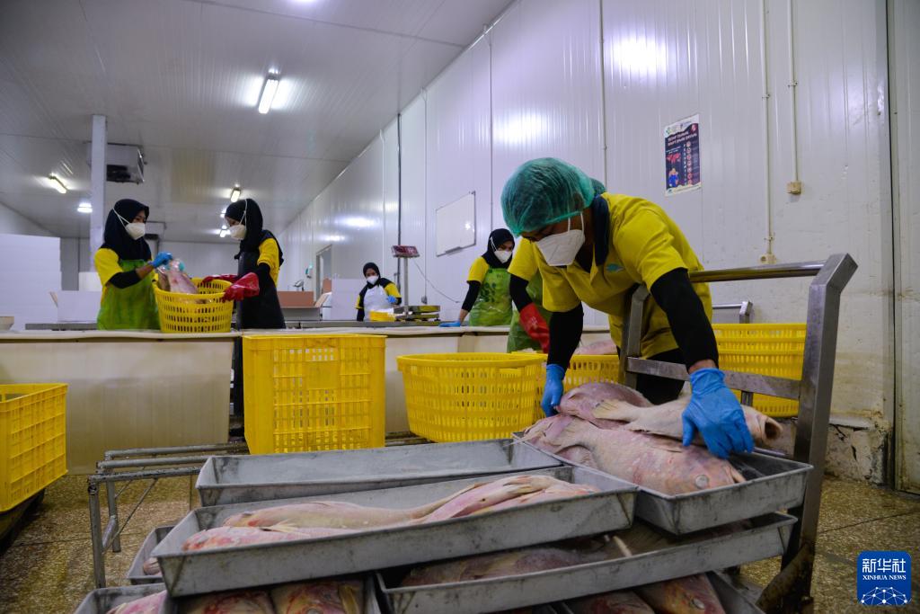 8月29日,在印度尼西亞中爪哇省三寶壟市,工人在福建淼天匯食品有限公司印尼公司的海魚加工生産線上工作。新華社記者 徐欽 攝